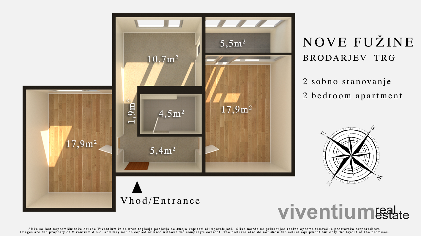 V Novih Fužinah, Brodarjev trg, prodamo popolnoma prenovljeno 2-sobno stanovanje s pogledom na zeleno okolico.