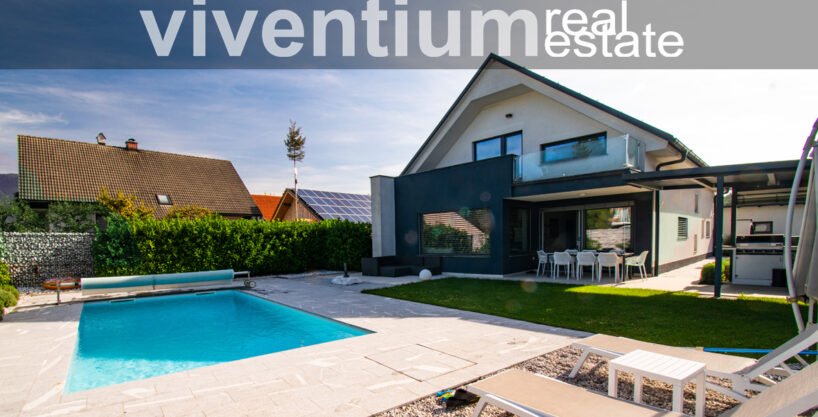 Na prijetni in mirni lokaciji na Ilovki pri Kranju posredujemo pri prodaji luksuzne hiše z bazenom in poslovno stavbo.